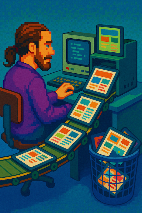 | Wie sich die meisten Webseiten für mich anfühlen. Bild generiert mit KI. |